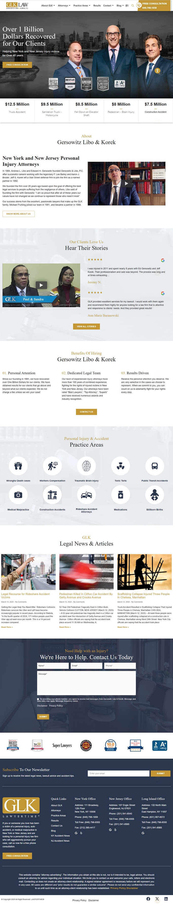 Gersowitz Libo & Korek, P.C. (GLK) stands as a distinguished law firm specializing in personal injury cases across New York and New Jersey. With a steadfast commitment to justice, GLK has dedicated over three decades to representing victims of negligence, securing substantial recoveries that have profoundly impacted clients' lives. Their unwavering dedication and proven track record position them as leaders in the realm of personal injury law.